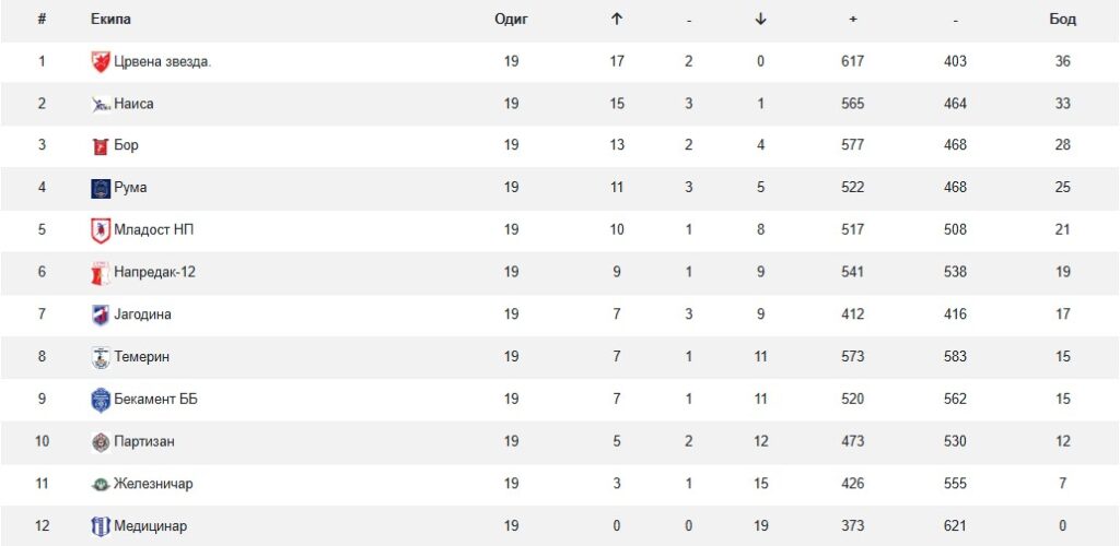РСС: Табела Аркус лига жене 2025/2026